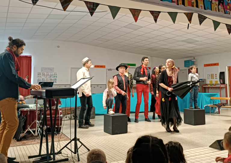 Les enfants de l’école publique Georges Martinais nous ont accueilli⋅es le vendredi 7 mars 2025 à la Chapelle des Fougeretz. Nous avons été ravi⋅es de cette nouvelle expérience. Après un mini-concert de 30’, trois ateliers danse, chant et instruments ont animé la journée des enfants (CP, CE1, CE2). Tous les enfants ont produit un petit spectacle de restitution. Les enfants étaient enchantés et nous aussi. Cette expérience enrichissante ne demande qu’à être renouvelée !